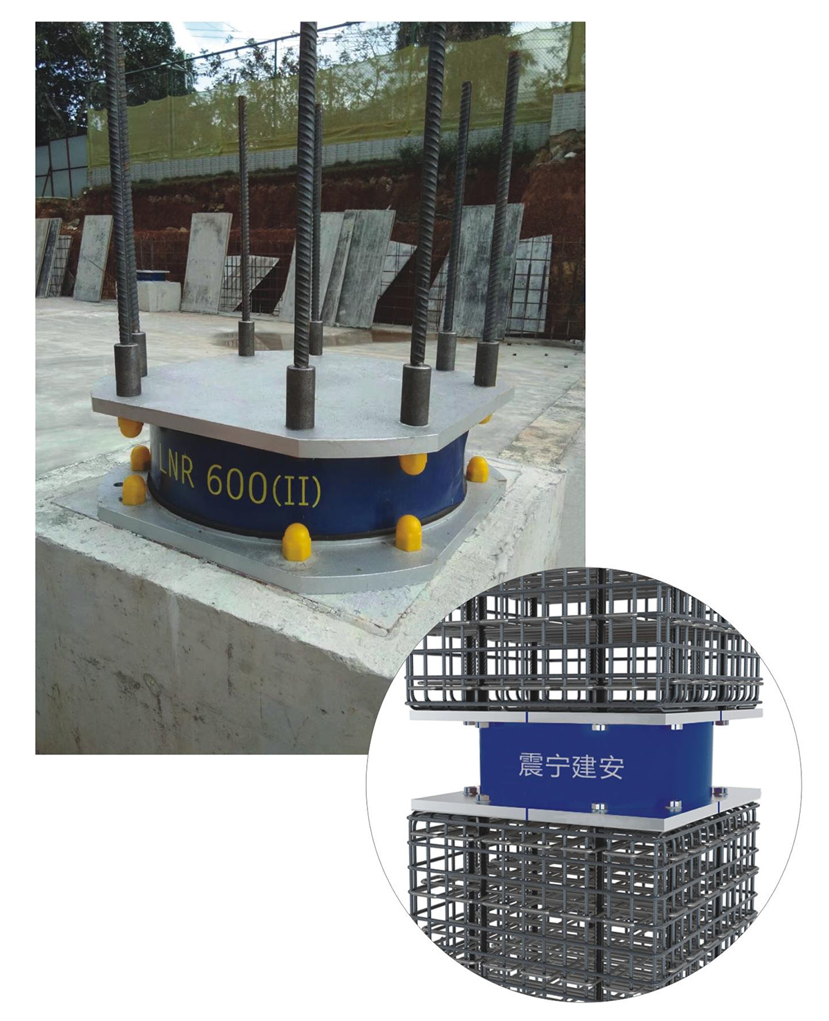 隔震橡胶支座(LRB/LNR)是按照现行国家及行业相关标准研制开发的减隔震类建筑构件产品,建筑隔震橡胶支座分为铅芯橡胶支座和天然橡胶支座。铅芯橡胶支座(LRB)由铅芯棒、橡胶层、钢板等叠层粘结而成。铅芯棒增大支座的阻尼,吸收能量;钢板提高支座的竖向刚度,使之能有效地支承建筑物结构;橡胶层赋予支座高弹性变形及复位和承载的功能。因此,铅芯橡胶支座既具有较高的承载性,又有较大的阻尼、大水平位移能力和复位功能,它是一种集支承与耗能于一体的隔震装置。而天然橡胶支座阻尼系数较小,一般只利于较小的水平刚度,以延长结构的周期,避免地震力对建筑的破坏。