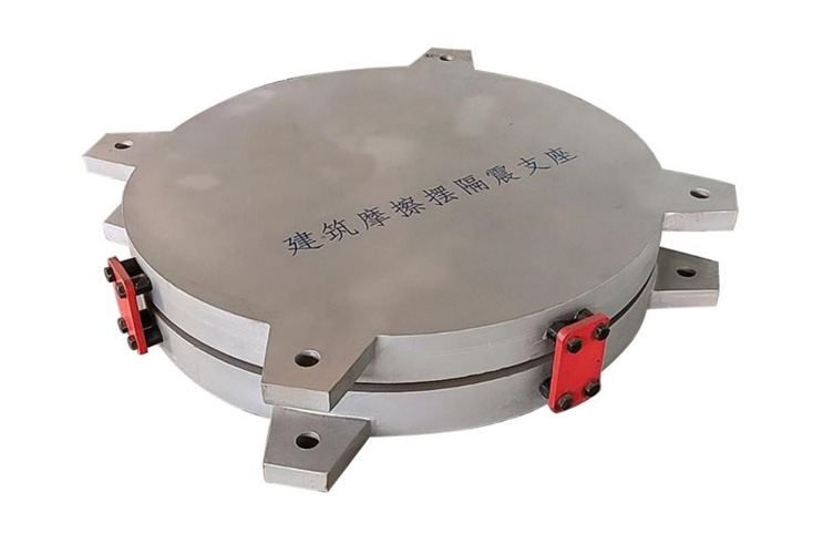 摩擦摆隔震支座(FPS)由上座板、下座板、球冠体、摩擦材料、滑动摩擦面、锚固装置组成。滑动摩擦面的构造及处理:摩擦材料可采用粘接加沉头螺钉或沉头螺钉进行固定,金属摩擦面可采用电镀硬铬、包覆不锈钢板等方式处理。